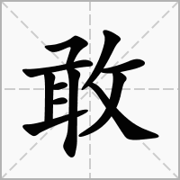 又如:敢毅(勇敢刚毅);敢士(勇士);敢直(果敢正直);敢勇(果敢英勇);敢断(果敢决断)