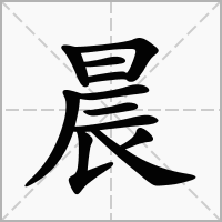 (会意。从臼,从辰,辰时也。辰亦声。本义:星名。即房星) 清晨