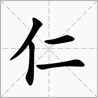 又如:仁人(有仁德的人);仁术(施行仁道、仁政的方法);仁宇(在仁德的覆蔽之下);仁瑞(仁德的瑞兆);仁朴(仁爱朴实);仁笃(仁爱笃厚);仁诲(仁爱的教诲);仁鄙(仁爱与鄙薄)