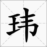 如:玮术(奇特的方术);玮宝(珍奇的宝物);玮环(珍奇,美好);玮博(卓异广博);玮异(奇异);玮奇(奇特,卓异);玮器(杰出的人才);玮艺(卓越的技艺)