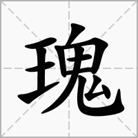又如:瑰瑰赖赖(形容肌肉隆起);瑰岸(形容人的气概雄伟,相貌魁梧);瑰硕(魁伟;健壮);瑰木(巨大的木头);瑰大(硕大)