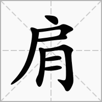 又如:肩巴(肩膀);肩甲(即肩胛);肩磨(肩膀耸动,浑身发抖);肩排(并肩排列;并排)