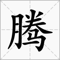 又如:腾那(窜跳躲闪。指武功);腾身(跃身,纵身);腾超(跳跃腾空);腾距(跳跃);腾身而过;腾希(腾跃于空中);腾奔(腾跃奔驰);腾轩(腾跃高举);腾倚(或腾跃或倚立);腾闪(腾跃闪避);腾驰(腾跃奔驰);腾跣(赤足腾跃);腾奋(腾跃奋飞);万马奔腾;腾踯(腾空跳跃,向上跳);腾霄(腾空,冲天);腾凌(腾跃);腾逸(腾空跨越);腾击(腾空攻击)