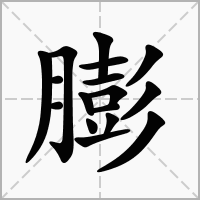 (形声。从肉(月),彭声。本义:胀大) 同本义。体积或长度增大 。