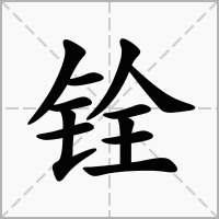 铨:一般指称量,衡量,鉴别,如铨次,铨材;也指官职,选拔,如铨综,铨轴。