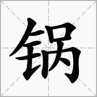 (形声。从金,咼( kuā)声。本义:炊事用具,圆形中凹,多用铁制)