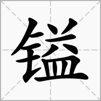 (形声。从金,益声。本义:古代的重量单位,二十两或二十四两为一镒)同本义 [an ancient unit of weight (=20 or 24 liang)]