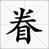 眷本义是指回头看,如眷,顾也(《说文》)。后引申为恩顾,器重,思慕,眷恋等。