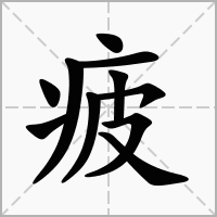 (形声。从疒,皮声。病字旁念 chuáng,据甲骨文,象人躺在床上害病的样子。以它作形旁的字一般与疾病有关。本义:疲乏;困倦)