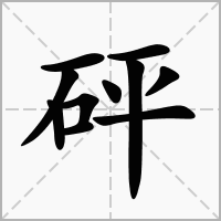 如:砰訇(形容打门的声音);砰砰(鼓声;水流声;用力敲门声;枪声);砰朗(形容器物碎裂声);砰通(用力关门声);砰湃(形容水流汹涌、暴雨等声)