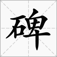 (形声。从石,卑声。本义:古时宫、庙门前用来观测日影及拴牲畜的竖石)