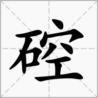 又如:硿然(水激石声);硿硿(击金石声);钟硿硿焉(这里指硿硿地(发出声响)。指用斧撞击石头发出的声音。焉,与“然”同。形容词词尾)
