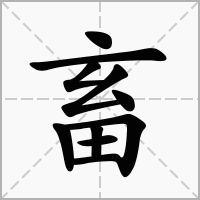 又如:家畜、牲畜、幼畜、畜牧(饲养的禽兽);畜牲(指牛、马、羊、鸡、狗、猪等六畜)