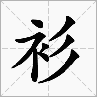 如:衫襟(衣衫);运动衫;毛线衫;套衫;衫串(衣服,衣着);衫傒(衣衫的袖子);青衫(唐代文官品级最低的官服)