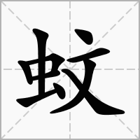 又如:蚊力(比喻力量微小);蚊市(黄昏时,蚊子聚集如市。形容蚊子甚多);蚊首(比喻极细微、就像蚊首一般);蚊负(比喻能力不足而负担重任。即无法胜任之意);蚊雷(蚊子飞集时如雷鸣的声音。后也比喻谤的言论);蚊睫(蚊子的睫毛。比喻极细微之物);蚊幌(蚊帐);蚊厨(夏天用以避蚊子的帷帐);蚊蝇(蚊虫苍蝇。亦喻纷扰的世情);蚊蚁(蚁虫蚂蚁。比喻坏人);蚊响(蚊虫聚飞发出的声音);蚊聚(蚊虫集聚);蚊翼(蚊虫的翅膀。比喻极小的事物);蚊烟,蚊烟香(即蚊香);蚊阵(犹言蚊群);蚊眉(蚁子的眉毛。比喻极小的地方);蚊吟(蚊子振翅所发出的声音);蚊虻(一种危害牲兽的虫类;比喻轻微的危害);蚊母鸟(即夜鹰。昼伏夜出,捕食蚊虻);蚊虻负山(比喻力弱者担重任,难以信任);蚊思负山(比喻力量虽微却愿担起重任)