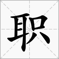 (形声。从耳,只(戠 zhí)声。“职”是“记”的意思。 段玉裁:“凡言职者,谓其善听也。”故从耳。本义:识;记。职为识之本字)