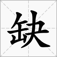 (形声。从缶( fǒu),夬( guài)声。缶,瓦器。“夬”也有表意作用。水缺为“决”,玉缺为“玦”,器缺为“缺”,都有破损之意。本义:器具破损) 同本义。引申为缺漏而不完整