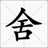 又如:庐舍(简陋的房屋);茅舍(茅屋);舍园(宅内庭院);舍中(家中);宿舍;茅舍;牛舍;校舍;舍匿(用房子藏匿。即“窝藏”)