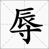 (会意。甲骨文字形,是“辰”下加脚(止)或加手(又,寸)的形象。①本义:耕作。“辰”是“蜃”的本字,古代以蜃为农具进行耕作。这个意义后来写作“耨”( nòu)。②引申义:耻辱) 同引申义