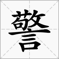 又如:警巡(警戒巡视);警跸(古代为皇帝出行清道,严加戒备,断绝行人);警惧(警戒恐惧);警边(警戒边境)