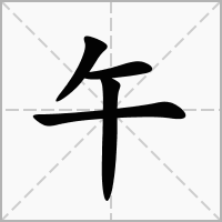 又如:午午(交错杂沓的样子);午道(纵横交贯的要道);午贯(十字形交叉贯穿);午割(交叉切割)