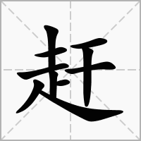 (形声。从走,旱声。①( gián)本义:兽类翘起尾巴奔跑。《说文》:“举尾走也。”②追赶;驱赶)