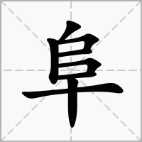 阜:本义指土山,用于形容丰富,富有,盛,大,多。也表示地势或升降等意义。