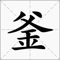(形声。从金省,父声。本义:古炊器。敛口圜底,或有二耳。其用于鬲,置于灶,上置甑以蒸煮。盛行于汉代。有铁制的,也有铜或陶制的)