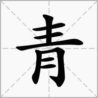 (会意。从生,从丹。金文字形上面是个“生”字;下面是“丹”字,丹是井字之变。“青”是汉字部首之一。本义:蓝色)