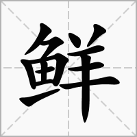 又如:鲜色(清新美丽的颜色);鲜新(清新)