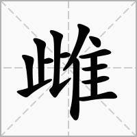 (形声。从隹( zhuī),此声。从“隹”,表示与鸟有关。本义:母鸟。引申为母的)