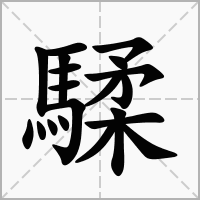 騥róuㄖㄡˊ多鬃的青黑色马。郑码:CUMF,U:9A25,GBK:F26B笔画数:19,部首:马,笔顺编号:1211254444545231234
