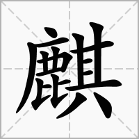 (形声。从鹿,其声。《说文》:“仁兽也。”本义:传说中的一种动物,其状如鹿,独角,全身生鳞甲,尾象牛。多用作吉祥的象征。又名“麒麟”,又单称“麟”)