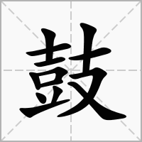 (会意。甲骨文字形,左边是鼓的本字,右边是“支”( pū),表示手持棒槌击鼓。本义:鼓,一种打击乐器)