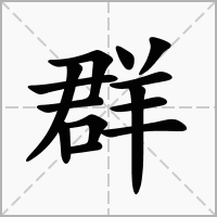 又如:群而不党(聚集在一起,却不结党);群曲(合唱的曲子。大多为一人引端,众人和声);群行(结队而行);群萃(事业相同的人集聚在一起);群处(成群地相处)