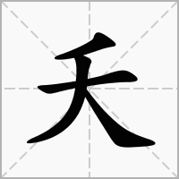 夭,屈也。——《说文》。按,从大而屈其首,指事,申者,腰之直,夭者头之曲。