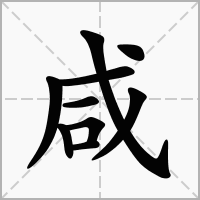 咸:全、都;像盐的味道,含盐分多的,与“淡”相对。