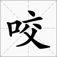 (形声。从口,交声。《说文》本从“齿”。本义:用牙齿把东西夹住或切断弄碎)