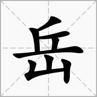 (会意。从山,从丘。古文字形,象两座高大的山峰形,表示高山大岭。“嶽”字从山,狱声。本义:高大的山)