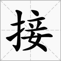 又如:接物(与外物接触;与人交往);接膝(膝盖相接。指彼此对坐靠得很近);接仗(交战,打仗);接席(坐席相接。多形容亲近);接翅(翅膀碰着翅膀。形容禽鸟多)