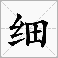 又如:细腰(细要。纤细的腰身);细娘家(指容貌美好的少女);细袅袅(细而柔软的样子);细毛(纤细的毛)