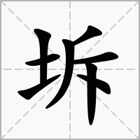 又如:坼兆(龟甲、兽骨占卜时,裂纹所显示的预兆);坼罅(裂缝)