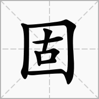 (形声。从囗( wéi),“围”的古体字,象四周围起来的样子,古声。本义:坚,坚固)