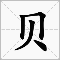 (象形。甲骨文和金文字形,象海贝形。汉字部首之一。古时以贝壳为货币,又用作装饰,故从“贝”的字多与钱财宝物、装饰品或贸易商品有关。本义:海贝)