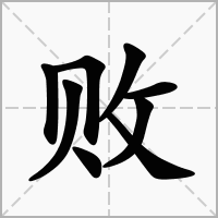 (会意。从贝,从攴。攴( pū),甲骨文象以手持杖,敲击的意思,汉字部首之一。在现代汉字中,“攴”大多写成“攵”,只有极少数字保留着“攴”的写法。从“攴”的字多与打、敲、击等手的动作有关。败,甲骨文左边是“鼎”字(小篆简作“贝”),右边是“攴”,表示以手持棍击鼎。本义:毁坏,搞坏)