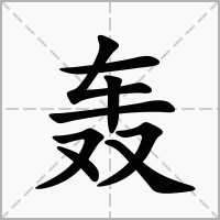 轰本义指群车行驶声,后引申为赶,驱逐,用大炮、炸弹、导弹等破坏等含义。