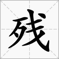 又如:摧残(使蒙受严重损失);残心(残害人的心);残贼(杀害);残灭(残杀毁灭);残夷(残杀)