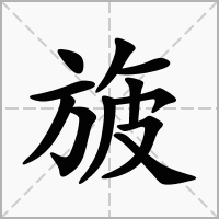 旇,读作pī,是形声字,“㫃”为形旁,“皮”为声旁,意思是旌旗披散的样子;又读bì,指旌旗。旇属于生僻字,现代汉语一般不用。