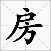 (形声。从户,方声。上古边室皆用单扇门(即“户”),庙门大门才用双扇门,故“房”从“户”。本义:正室左右的住室)