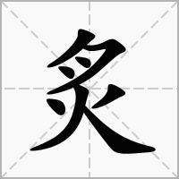 (会意。从肉从火。小篆字形,肉在火上烤。本义:烧烤,把去毛的兽肉串起来在火上薰烤)